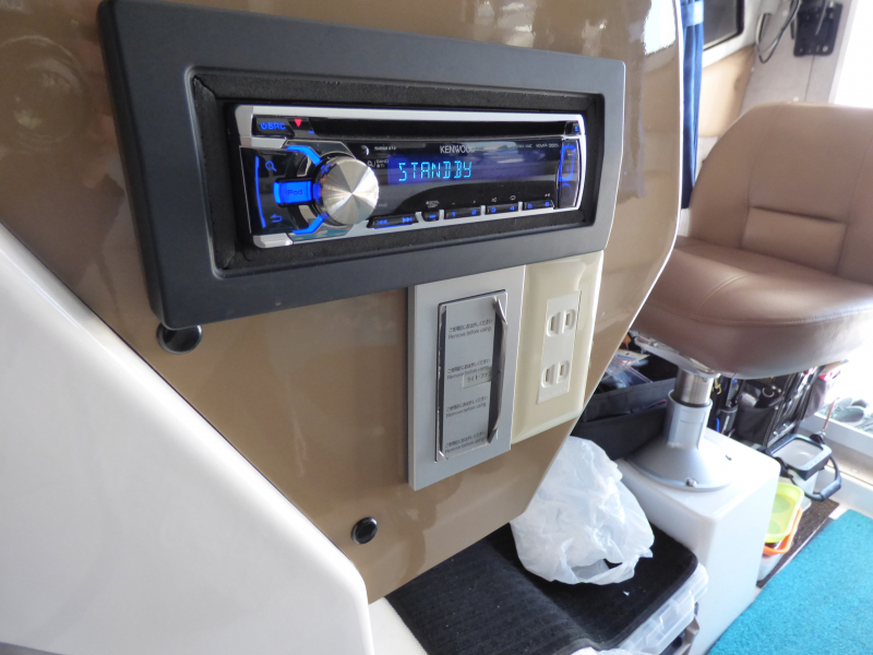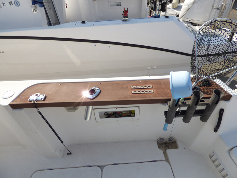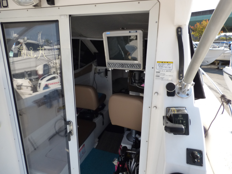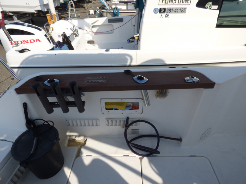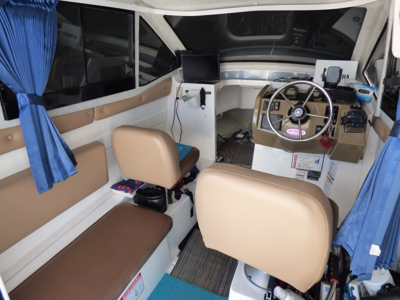 装備品以外のオプション:コンセント(2個)、アフトGPS魚探モニター&スイングアーム、サーチライト、デッキライト、電動リール電源BOX(2個)、テレビアンテナ、フェンダーホルダー、清水タンク&蛇口